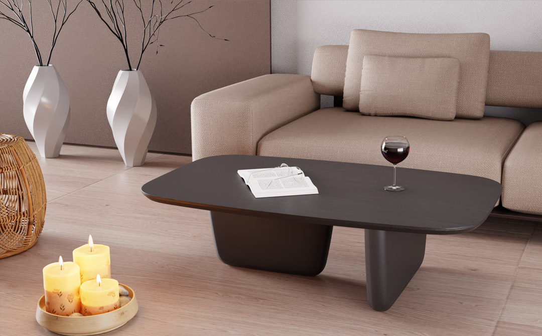 Τραπέζι σαλονιού zuka με επιφάνεια από ξύλο δρυός και βάση από λάκα. Παράγεται στη μονάδα μας σε χρώματα της επιλογής σας.