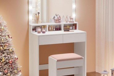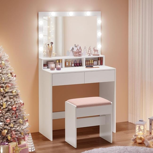 LUCY Set Τουαλέτα με Σκαμπό, Απόχρωση Άσπρο, Καθρέπτης LED & θύρα USB ΔΙΑΣΤΑΣΕΙΣ 80x40x75/140cm LUCY Set Τουαλέτα με Σκαμπό, Απόχρωση...